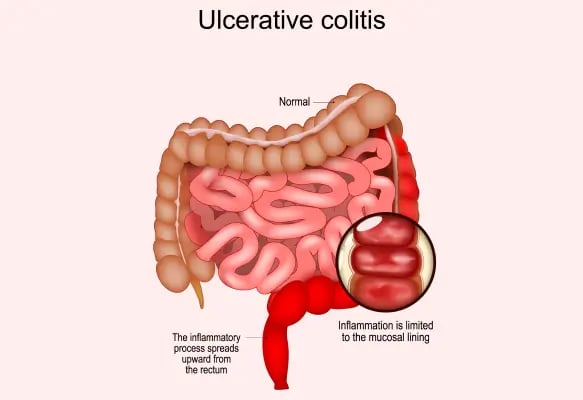Ulcerative Colitis occurs when the immune system mistakenly attacks the colon’s lining, leading to continuous inflammation and ulceration. While the exact cause remains unknown, several contributing factors have been identified: